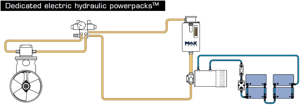 Sometimes an engine driven pump may not be feasible, if this is the case Max Power manufactures a range of dedicated DC power packs specifically designed to run our range of hydraulic thrusters both retractable and tunnel. These have been designed to supply a fixed flow of oil at a specific pressure.