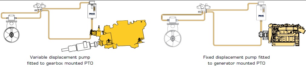 Used when a generator with a PTO (power take off) is available, fixed displacement pumps give a single (fixed) flow at a given engine RPM. Highly robust, these systems are simple to install and cost effective.